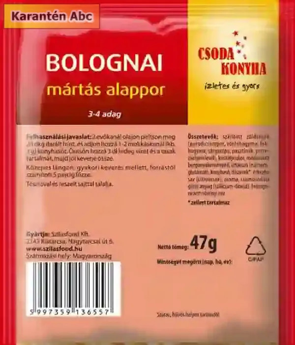 - Terméknév: Csoda konyha alappor Bolognai mártás 47g 47 g
